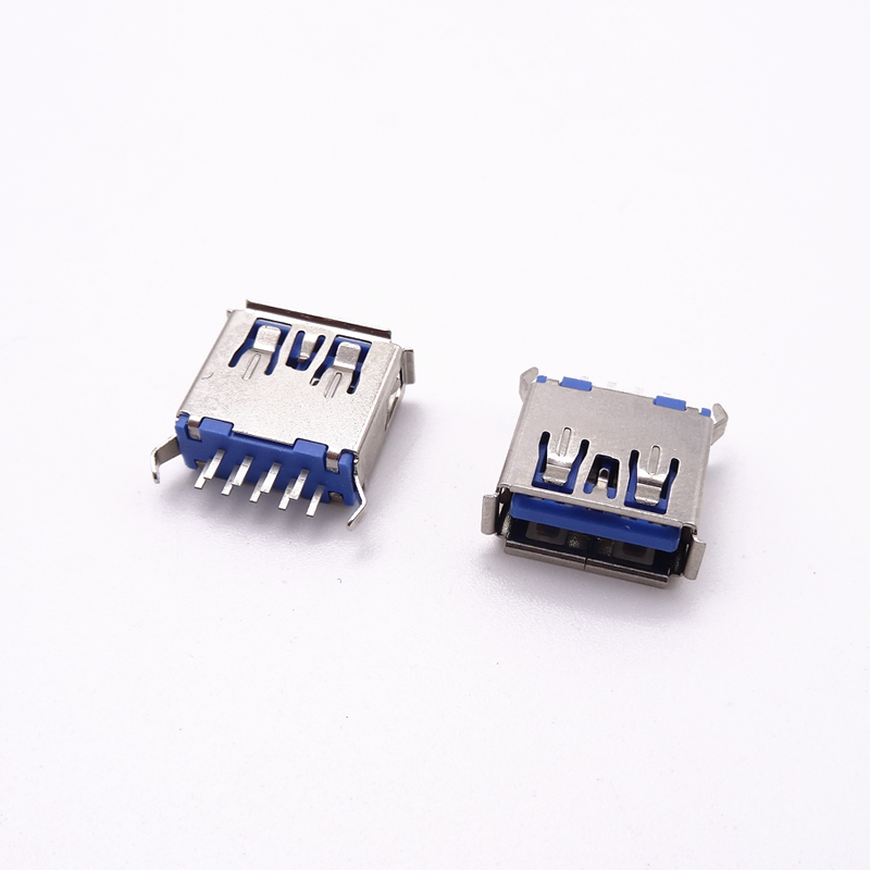 USB 3.0母座 短体11.5直插母座 180度立插 弯脚卷边 蓝胶